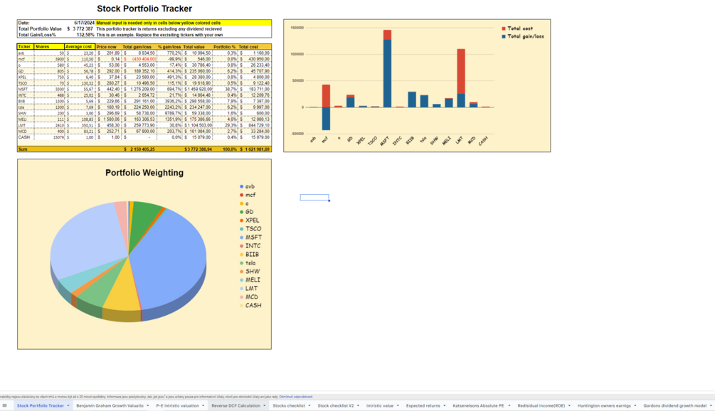 YouΒ΄ll get one big spreadsheet with portfolio tracker,2x Stock checklists, 9x Stock valuation models
